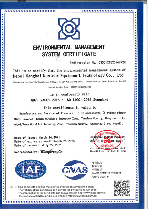 河北滄海環境管理體系認證證書(英文)