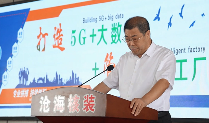 會上,董事長趙德清作會議致辭。他指出“5G+大數據+管道智能工廠”項目得以啟動,特別感謝鹽山縣政府、工信局的大力支持。作為一家大型制造企業,滄海核裝以“智能制造+智慧運行”為發展戰略,不斷提升企業數字化制造能力。希望通過本次與中國移動合作,依托5G技術,針對滄海智能管道的實際發展需求,深化落地“5G+智慧工廠”應用,推動滄海核裝智能數字化轉型,實現企業高質量發展!